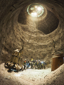 Shaft construction proceeded in several sequential steps in the frozen part of the shaft.